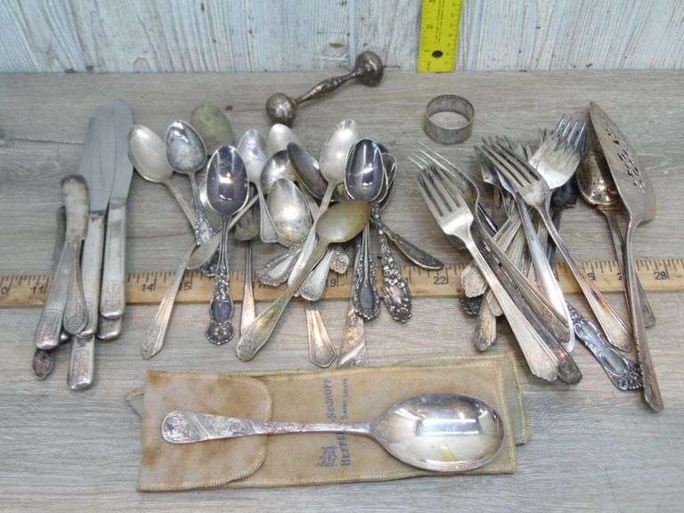 LOT 93 - Flatware, Child's Napkin Ring & Baby Rattle